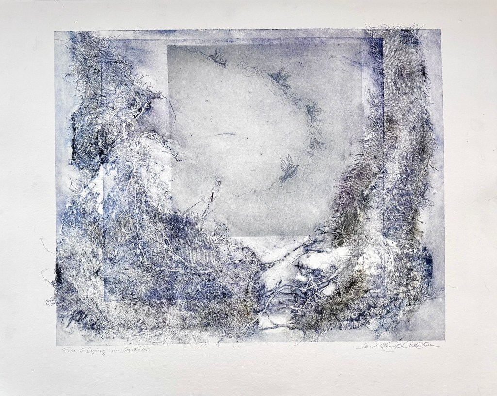 Collagraphs are plates (or matrixes) made from collages. I usually use material that I find from the Andalucian or Finnish nature. The work is quite abstract but with a little imagination you can see many things in them.